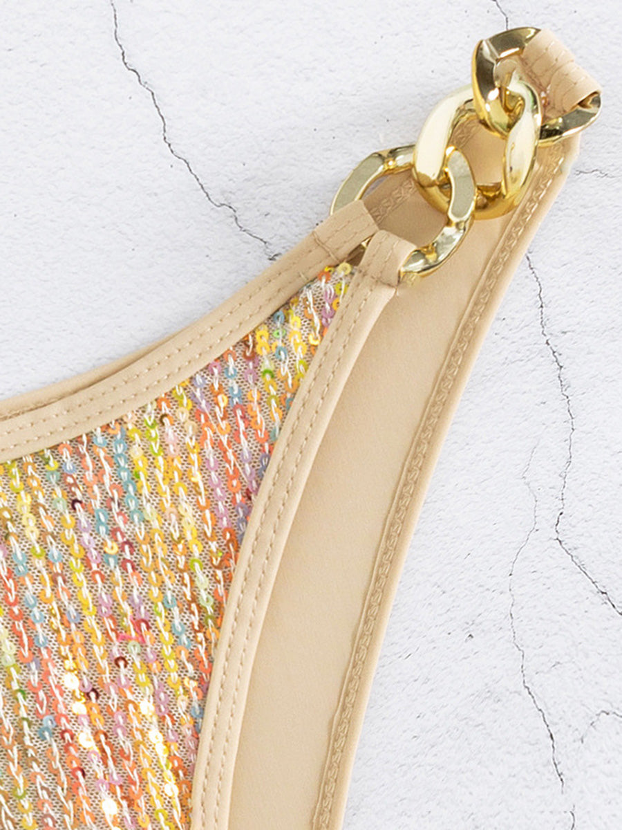 Pailletten Bikini mit Metallketten – glamourös, modern & ein echter Blickfang