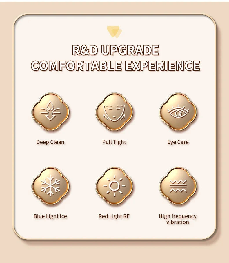 ✨ RF Lifting-Technologie: Tiefenwirksame Radiofrequenz regt die Kollagenproduktion an und strafft Hals & Gesicht – für sichtbare Anti-Aging-Ergebnisse.