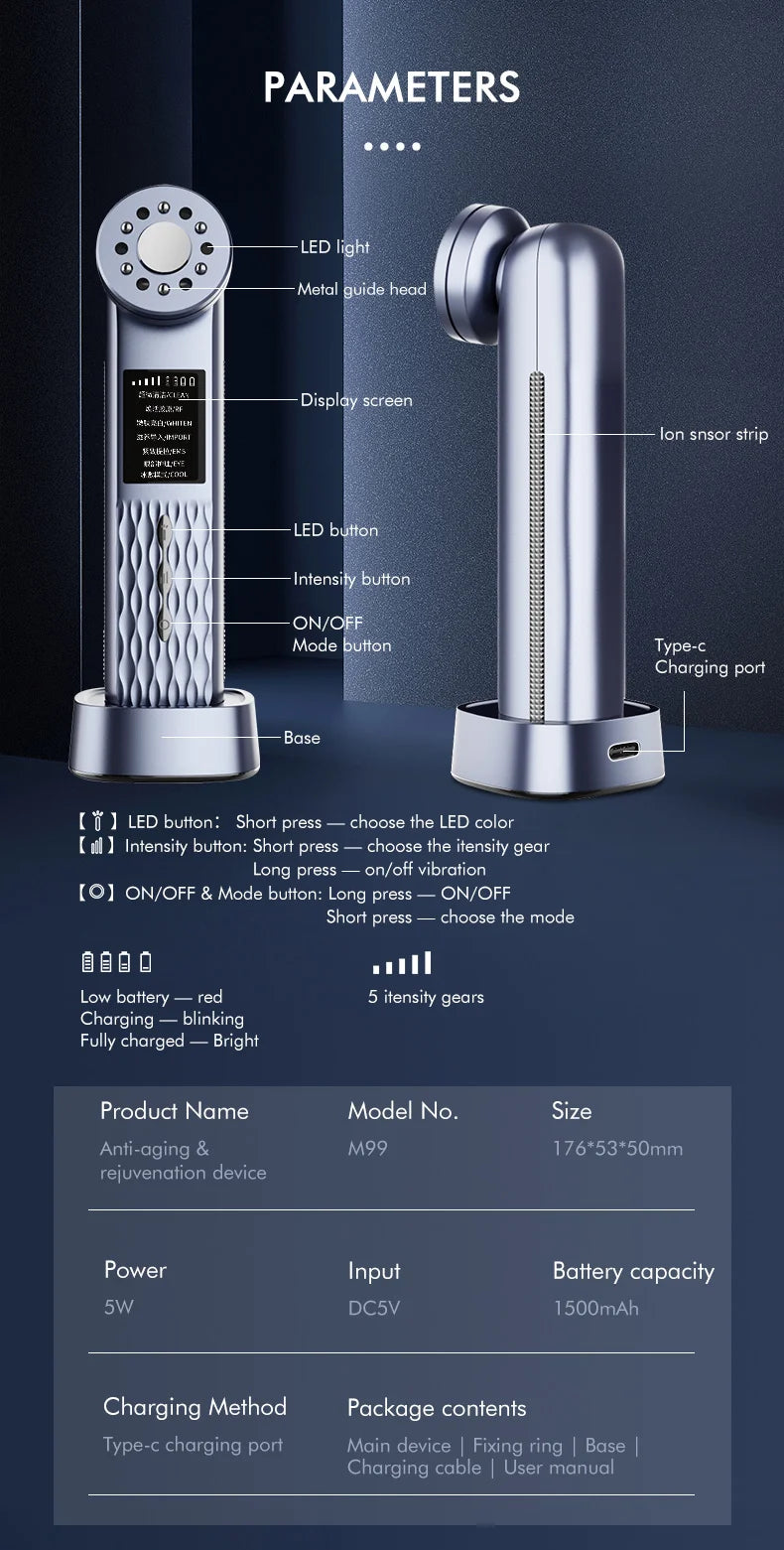 ✨ Mikrostrom & EMS: Sanfte elektrische Impulse straffen das Bindegewebe, aktivieren die Gesichtsmuskulatur und heben erschlaffte Konturen – für ein sofortiges Lifting‑Gefühl.