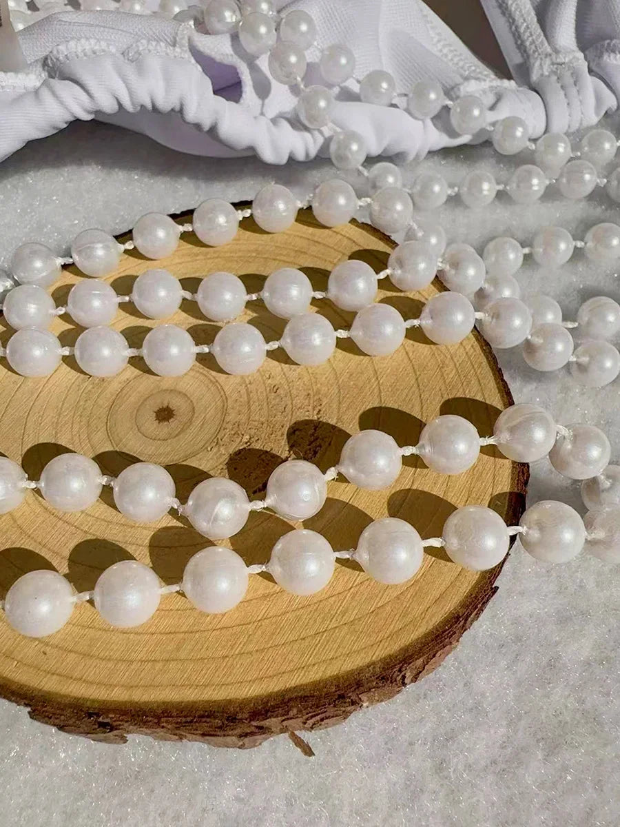 3-teiliges Bikini-Set mit Perlenketten – Luxus am Strand