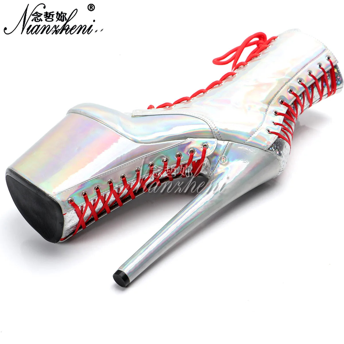 Diese High Heel Stiefeletten im Biker-Look kommen in mehreren auffälligen Farben – von glänzendem Silber bis hin zu weiteren auffälligen Tönen. Mit einem dramatischen Absatz von ca. 20 cm und einer stabilen Plateauhöhe von ca. 7 cm bist du nicht nur größer, sondern auch deutlich sichtbarer. Diese Boots setzen ein Statement – in deiner Lieblingsfarbe.