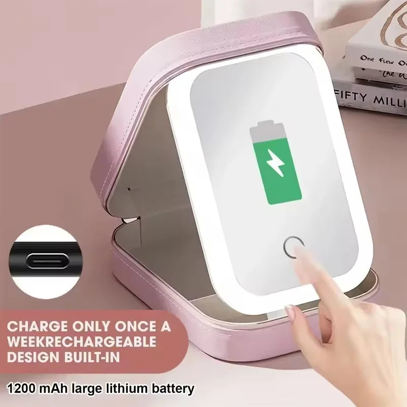 Wiederaufladbarer LED-Schminkspiegel mit Kosmetik-Aufbewahrungsbox – Perfekt organisiert & ready to glow! ✨💄